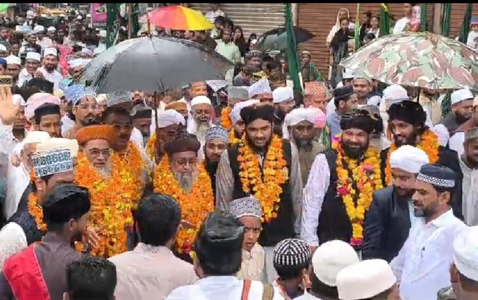 बुरहानपुर (अकील ए आज़ाद) इस्लाम धर्म के बानी हजरत मोहम्मद साहब के जन्मदिन ईद-ए-मिलादुन्नबी के अवसर पर बुरहानपुर में एक भव्य जुलूस का आयोजन किया गया। इस खास मौके पर शहर में गंगा-जमुनी तहज़ीब की अनूठी मिसाल देखने को मिली। जुलूस में बड़ी संख्या में मुस्लिम समाज के लोग, धर्मगुरु, समाजसेवी और विभिन्न राजनीतिक दलों के प्रतिनिधि शामिल हुए।कांग्रेस पार्टी से जुड़े कई स्थानीय नेता भी जुलूस में शरीक हुए और मोहम्मद साहब की शिक्षाओं को जन-जन तक पहुँचाने का संदेश दिया। जुलूस शहर के मुख्य मार्गों से होते हुए गुज़रा, जहाँ समाज जनों की ओर से नात-ए-पाक पेश किए और मोहम्मद साहब के जीवन से जुड़ी शिक्षाओं का प्रचार किया। धार्मिक सौहार्द और भाईचारे की मिसाल बने इस आयोजन में सुरक्षा व्यवस्था चाक-चौबंद रही। स्थानीय प्रशासन की ओर से भी आयोजन को सफल बनाने के लिए पूर्ण सहयोग दिया गया। इस अवसर पर लोगों ने मोहम्मद साहब की सीख शांति, दया और इंसानियत को आत्मसात करने का संकल्प लिया।