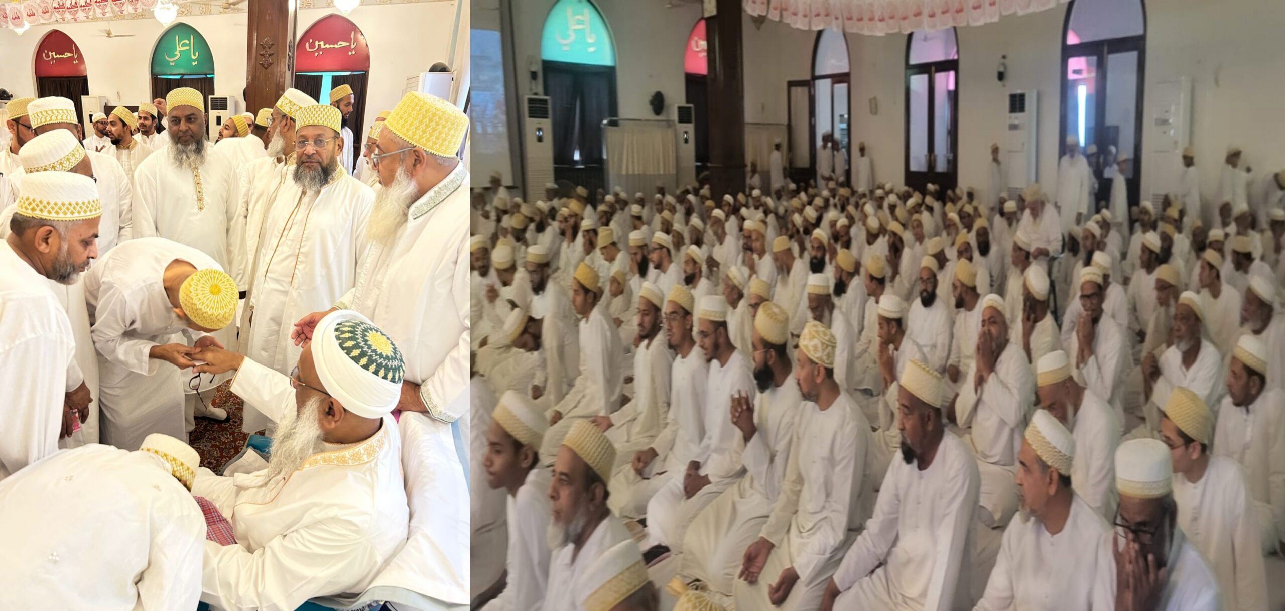 बुरहानपुर (अकील ए आज़ाद) दाऊदी बोहरा समाज ने गुरुवार को ईद उल फ़ित्र की विशेष नमाज अदा कर एक दूसरे के गले मिल कर ईद की मुबारकबाद दी। दाऊदी बोहरा जमात PRO कमेटी के कोडिनेटर तफज्जुल हुसैन मुलायमवाला ने जानकरी देते हुए बातया की शहर आमिल शेख हैदर भाई साहब ने स्थानीय नज़मी मस्जिद मे समाज जनों को ईद उल फ़ित्र की विशेष नमाज अदा कराई।19 मार्च गुरुवार को सुबह स्थानीय नज़मी मस्जिद मे शहर आमिल शेख हैदर भाई साहब जमाली ने बोहरा समाज जनों को ईद उल फ़ित्र के मौक़े पर विशेष खुतबा पढ़ कर अदा कराई जिसमे देश मे अमन शांति सद्भावना की दुआएं की गई ईद के अवसर पर 53 वें धर्मगुरु डॉ.सैय्यदन मुफादल सैफुदीन साहब की लंबी उम्र ओर सालमती की दुआएं की गई साथ ही सैय्यदना साहब का रूहानी फैज़ सभी को मिलता रहे इसकी भी दुआएं की गई जमात के तफज्जुल हुसैन मुलायम वाला ने आगे जानकरी देते हुए बातया की ईद उल फ़ित्र के अवसर पर 53 वें धर्मगुरु सैय्यादन डॉ. मुफादल सैफुदीन साहब बोहरा समाज की विभन्न मस्जिदों मे भी अलग अलग शहरों से रमजान माह के लिए मुकरर इमाम साहबो ने ईद की विशेष नमाज अदा करा कर देश मे अमन सकून सद्भावना की सभी के लिए दुआएं कर ईद उल फ़ित्र की मुबारकबाद पेश की। वही ईद उल फ़ित्र के अवसर पर लोधीपुरा स्थित सुप्रसिद्ध धर्मिक स्थल दरगाह ए हकीमी प्रबंधक शेख सब्बीर भाई साहब एवं उप प्रबंधक मुस्तुफा भाई उज्जैनी के मार्गदर्शन मे ईद उल फ़ित्र पर हकीमी मस्जिद मे नमाज अदा कर सभी को मुबारकबाद दी इसके साथ ही मोहम्मदी मार्केज मे आमिल साहब डॉ. मुर्जुजा भाई साहब ने ईद की विशेष नमाज अदा कराई एवं समाज जनो को मुबारकबाद पेश की। ईद उल फ़ित्र के खास अवसर पर महिलाओ पुरुषो के साथ साथ बच्चों मे खासा उत्साह देखने को मिला ईद उल फ़ित्र के खास अवसर पर शहर आमिल शेख हैदर भाई साहब जमाली, नायब शहर आमिल शेख युसूफ भाई साहब जमाली, दरगाह ए हकीमी प्रबंधक शेख सब्बीर भाई साहब उप प्रबंधक शेख मुस्तुफा भाई उज्जैनी ने सभी शहर वासियो सहित देश वासियो को ईद की मुबारकबाद दी एवं सभी की खुशहाली ओर तरक्की की कामना की।